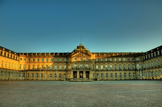 Al costat est de la Schlossplatz s’aixeca el Palau o Castell Nou, d’estil barroc tardà. La seva construcció va començar al 1746 per odre del jove duc Charles Eugene de 16 anys d’edat.