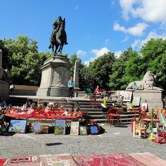 A un costat del Castell Antic, es troba la històrica plaça, la Karlsplatz, hi ha registres de que al 1393, aquesta era un jardí privat de la duquessa regent, rodejat per muralles. Més tard, al 1778 es rehabilita per ser un jardí públic i al 1898 es col·loca el monument en honor a Wilhelm I, rei de Prússia i emperador Alemany.
