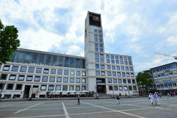 El Rathaus o es va erigir al 1956 com una torre del rellotge de 60,5 metres d’alçada. L’anterior s’havia construït al 1905 en estil gòtic tardà flamenc. No obstant, va ser destruït pels ataca aeris de la II Guerra Mundial.