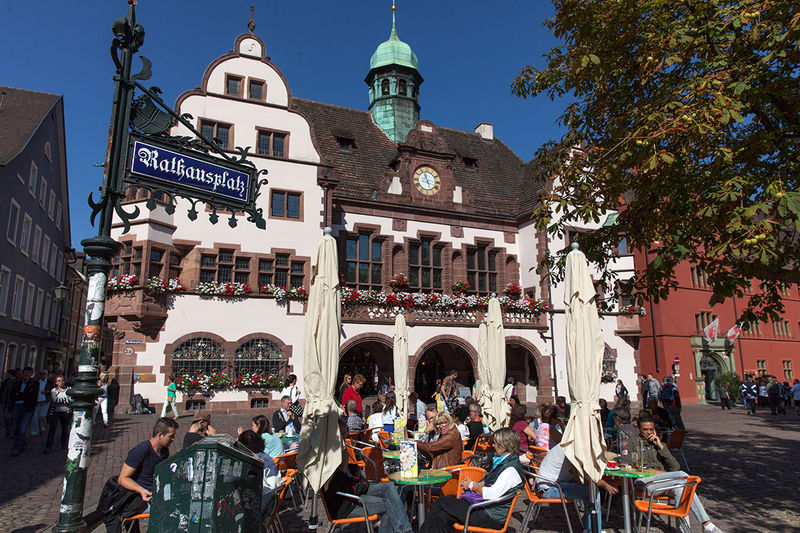 La plaça de l’Ajuntament és una de les més concorregudes de Friburg. Per aquí transiten els turistes, locals i els recent casats que surten de l’oficina del registre. Durant l’època nadalenca es posa encara més bonic gràcies al mercat de nadal que munten a la plaça.