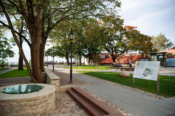 Fora de les muralles s’obre, al sud de la plaça principal de la ciutat moderna, Vadabuse Väljak, a l’est hi ha l’església gòtica de Jaani Kirik i al sud el teatre rus Vene Draamateater.