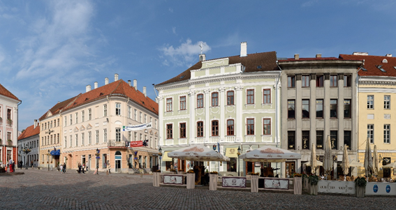 Darrera de l’edifici de l’Ajuntament i als peus d’un turó es troba el carrer Ülikooli on es troba l’edifici principal de la Universitat de Tartu.