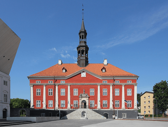 L’Ajuntament, ubicat a la Plaça de l’Ajuntament (Raekoda Plats) és un dels pocs monuments que es manté en peu després del bombardeig de 1944.