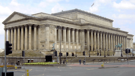 Si tractem del patrimoni arquitectònic de Liverpool, uns dels edificis més bonics i emblemàtics és el St George’s Hall. Aquesta construcció, estil neoclàssic, es va aixecar al segle XIX als terrenys que antigament ocupava un hospital. Aquest monument ha tingut diferents usos al llarg de la història, des de servir com a sala de concerts i exposicions, fins a ser la seu dels jutjats de la ciutat.