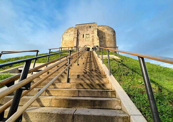 Aquesta torre sobre un turó verd és un reducte que es conserva del Castell de York. Va ser construïda per William I el Conqueridor, primer rei d’Anglaterra d’origen normand al 1068.